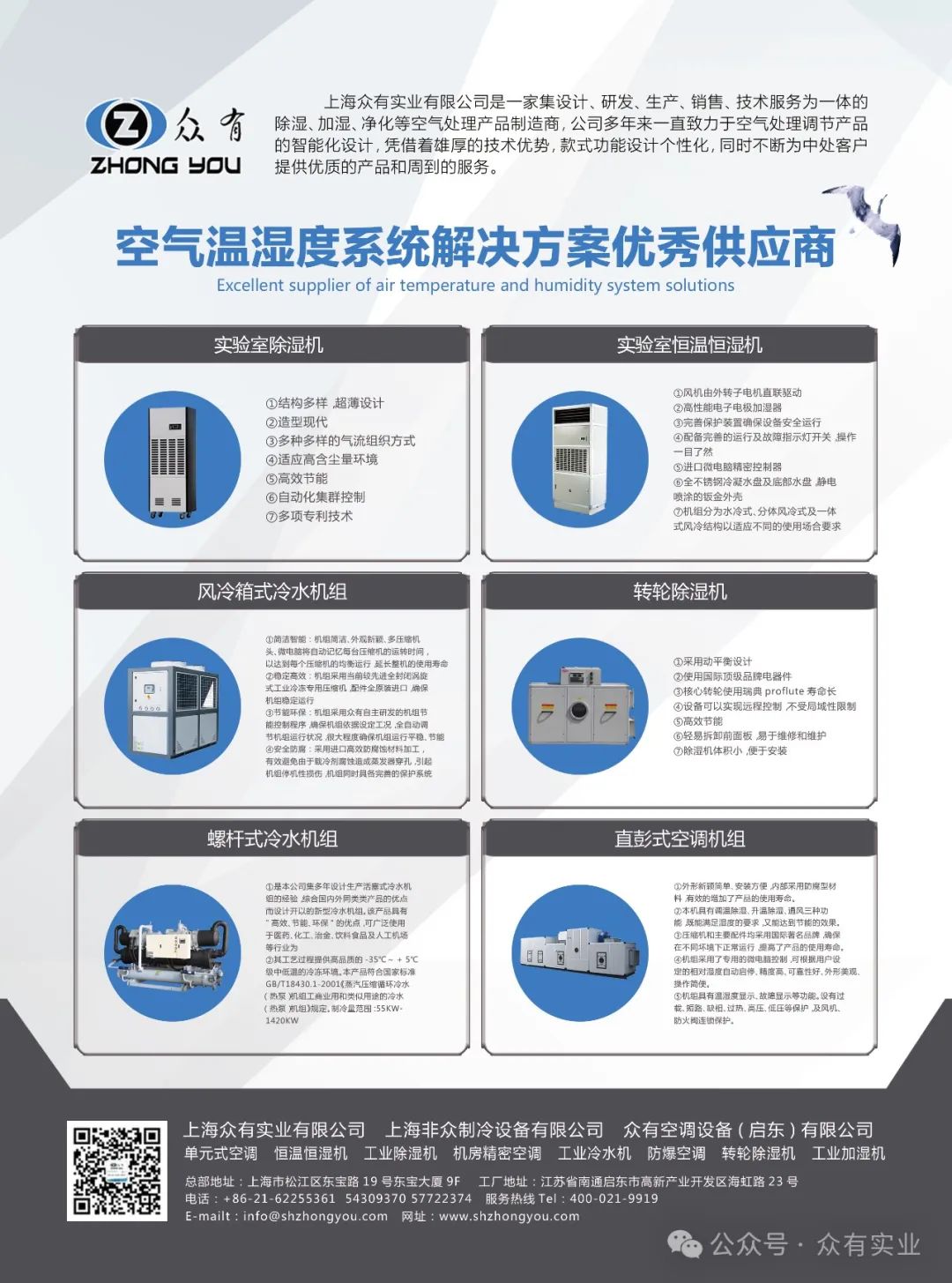 上海眾有從事工業空調十余年,ZHONGYOU眾有”、“非眾”雙品牌的大型制冷設備廠家,也正是從始至終堅持品質至上,以人為本,工匠精神的企業文化。其經驗分享和工程案例賞鑒常常成為行業的指導性素材,引導整個工業空調行業健康、向上發展。